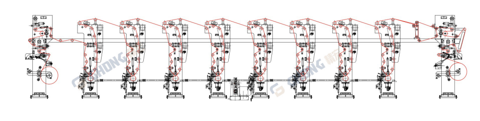 This machine is used for printing roll-type materials such as BOPP, PE, PET, PVC, and papers etc. with its advanced seven motors tension-controlling system, the processes such as dynamic synchronization of system tension and zero speed-difference automatic roll-changing arecontrolled andcompleted by the center PLC. Besides, parameters can be set and changed with Chinese character displayed touch-controlled man-machine interface; sealed drying case with secondary return air function are alsoequipped, the wind-screen type hot air drying is enabled by the unique round hole array, and automatic roll-changing work can be done in high-speed working status; the excellent rigidity andstability of the whole machine isensured by high quality materials and high-precision processing. Moreover, the human-based design concept will also bring adequate convenience for operators.